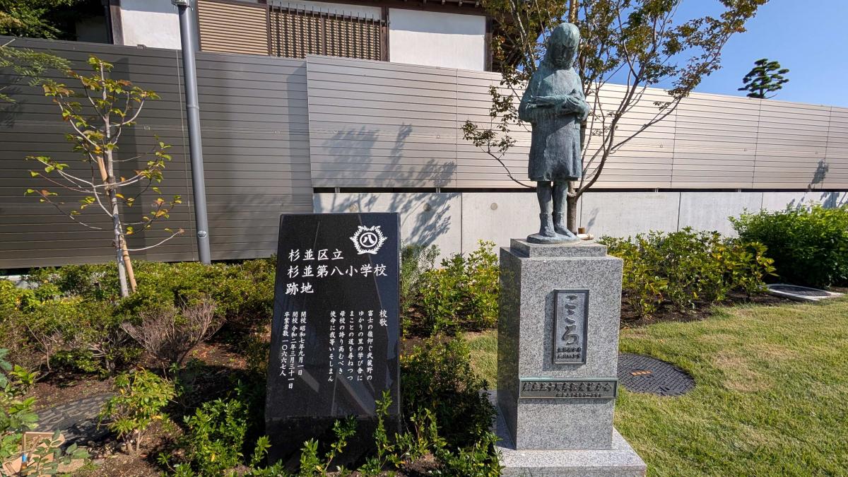 また、杉八小にあった樹木や体育館、モニュメントが残されていて、おしゃれな施設でありながら小学校の面影を感じます。